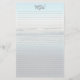 Papier à écriture personnelle monogramme et doublée. Un arrière - plan de scène de plage légère fait rouler des vagues jusqu'à la plage à marée basse. Des lignes légères recouvrent le papier sur le devant avec un modèle pour trois monogrammes initiaux en haut. L'arrière du papier a aussi la scène de la plage.