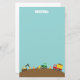 Les garçons qui aiment des véhicules, des jouets et des machines de construction vont aimer cette conception de papeterie qui a un bon nombre d'éléments de thème de construction comme un camion à benne basculante rouge et jaune mignon portant les débris, une excavatrice orange, un chargeur avant vert poussant les cônes de saleté, oranges et blancs. La note des textes est dans une vis comme la police qui est en conformité avec le thème.