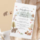 Créez simplement une invitation de baby shower d'animaux de bois mignons avec ce modèle qui comprend un hibou, renard, ours, écureuil, cerf, champignons et plus pour votre cottage douche à thème pour la future maman. CONSEIL : Consultez les autres articles de cette collection avec le même design pour une expérience d'achat complète et facile pour votre fête de baby shower.
