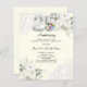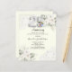 Pour un 25ème anniversaire de mariage élégant et romantique. Arrière - plan de couleur ivoire décoré de fleurs blanches, de roses et de dentelle blanche. Personnalisez et ajoutez votre photo, vos noms et vos détails. Le numéro 25 est écrit avec une police de type fausse ballons d'argent. 1 feuille = 1 invite imprimé bord à bord.