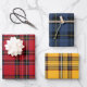 Bel ensemble de papier d'emballage rouge, bleu et jaune tartan.