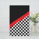 Papier scrapbooking pour ceux qui font des livres de course. Ce papier scrapbook de course unique présente un motif de bord à damiers sur la moitié inférieure avec un arrière - plan noir sur le dessus et une bande de course rouge séparant les 2 motifs.