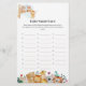 Laissez le nom tomber ! Ce jeu Woodland Baby shower Name Race est rapide, drôle, et plein de charme de la forêt. Les clients courent contre l'horloge pour écrire un nom de bébé pour chaque lettre de l'alphabet—tout en étant acclamé par d'adorables créatures boisées comme le renard, le lion, le tigre, l'ours, la girafe et le lapin.