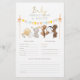 Une carte de prédictions et de conseils pour les bébés pour correspondre à nos invitations "Woodland Animals Band Parade mignonne Baby shower". Cette conception comprend une bande de marcheurs d'animaux de bois jouant à toutes sortes d'instruments, au-dessus d'eux, il y a des bottes dans les tons vert, jaune, rose, bleu et orange. Il y a de la place pour que les invités écrivent leurs prédictions de naissance, leurs prédictions de ressemblance et leurs conseils pour les nouveaux parents. Affichez la collection liée sur cette page pour la coordination des produits.