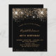 Une invitation moderne, élégante et glamour pour une fête d'anniversaire de 40ème (ou tout âge). Un arrière - plan noir décoré de fausse parties scintillant et brillant. Le nom est écrit avec un script de style à la main de couleur dorée moderne. Personnalisez et ajoutez les détails de votre fête. Retour : votre code QR sur votre site pour plus de détails et RSVP en ligne