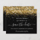 Une carte Save the Date pour une fête d'anniversaire de 30e (ou tout autre âge). Un élégant arrière - plan noir décoré avec de la poussière de parties scintillant en faux or. Personnalisez et ajoutez une date et un nom/âge. Le texte : Save the Date est écrit avec un grand script de style à la main tendance avec des swashes.