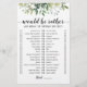Achetez ce jeu de verdure éditable et profitez de la haute qualité de la carte Will He Plutôt pour votre événement! C'est un modèle de jeu, Vous pouvez changer les questions comme vous le souhaitez! Aquarelle verte design feuille.
