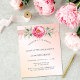Une invitation romantique pour une fête d'anniversaire de 60e (ou tout âge). Un arrière - plan rose or et rose vif dégradé. Un grand rose rose aquarelle, des feuilles verts, un feuillage avec de petites fleurs dorées. Un groupe de parties scintillant rose en faux or derrière les fleurs. Personnalisez et ajoutez un nom et des détails du parti. Lettres de couleur or rose foncé. Dos : or Rose, arrière - plan rose vif.