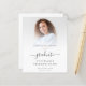 Une alternative BUDGETAIRE offrant un bon rapport qualité-prix dans un format plus petit de 4,5 x 5,6 pouces, avec une finition semi-brillante et un grammage de 110 livres, d'une épaisseur similaire à celle d'une carte postale (mais ne convient pas comme carte postale). VEUILLEZ NOTER qu'il y en a UN par feuille. Annonce de remise de diplôme photo de fin d'études Minimaliste Budget 2024. Une élégance simple pour annoncer la bonne nouvelle de votre diplômé. Le diplômé est représenté dans un script élégant avec des fioritures. Personnalisez facilement le texte selon vos besoins, y compris au verso, et remplacez l'image exemple par la vôtre.