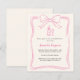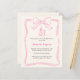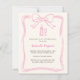 Une couleur crème douce, arrière - plan beige. Décoré d'un arc rose dessiné à la main, encadrer une bouteille de Prosecco et un verre, flûte. Personnalisez et ajoutez vos noms et détails. 1 feuille = 1 invite imprimé bord à bord.