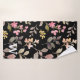 ensemble de serviettes de bain à monogramme à motif de feuilles botaniques rustiques aquarelle ,ensemble de serviettes de bain élégantes noires et vertes vintage avec fleurs roses .