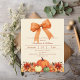 Arrière - plan beige moelleux. Décoré de fleurs citrouilles, orange et jaune et d'un grand arc. Personnalisez et ajoutez les détails de la fête. 1 feuille = 1 invite imprimé bord à bord.