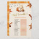 Citrouille d'automne Carte Jeux de Baby shower, Café Brewing Baby showers Carte, Word Scramble Baby shower Games Card.