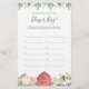 Sur le baby shower à thème de la ferme devinez ce qui est dans la carte de jeu sac de couches comprend une illustration d'animaux de ferme aquarelle et aquarelle de la végétation eucalyptus garland et élégante police de style manuscrit.