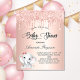 Pour un baby shower, célébrer une petite fille. Un arrière - plan rose en or. Décorée d'or rose, de gouttes roses, d'un look dégoulinant de peinture et d'une mignonne petite fille d'éléphant. Personnalisez et ajoutez le nom de la mère à être le nom et les détails de la fête. Le nom et le texte : Baby shower sont écrits avec un script de style écrit à la main