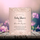 Pour un baby shower, célébrer une petite fille. Un arrière - plan rose à l'apparence métallique. Décoré d'or rose, de faux parties scintillant rose. Personnalisez et ajoutez le nom de la mère à être et les détails de la fête. Le nom et le texte : Baby shower sont écrits avec un script de style écrit à la main