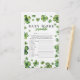 Créez un peu de plaisir à un baby shower avec ce jeu de mots sur le thème "shamrock" ! Des éléments design, un assortiment de shamrocks d'aquarelle dans les tons verts. Les réponses sont disponibles au contraire. Pour une personnalisation plus avancée de ce design, il suffit de sélectionner le lien "Personnaliser plus loin" après la personnalisation !