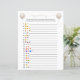 Cette carte de jeu double face dispose de deux versions différentes de pictionary émoji sur l'avant et l'arrière, et est parfait pour un baby shower ou un bébé sprinkle. Ce jeu de baby showers émoticônes avec des émoticônes est doté d'un ballon beige boho couleur aquarelle. Parfait pour une célébration sans distinction de genre. Vos invités peuvent résoudre ces phrases communes de grossesse et de bébé en décodant les émoticônes. CLÉ DE RÉPONSE : 1. Baby shower 2. Jumeaux 3. Triplés 4. Maman doit avoir 5 ans. Brise d'eau 6. Sac pour bébé de l'hôpital 7. Date d'échéance 8. Bouteille bébé 9. Voyage à l'hôpital 10. Couper la corde 11. Pâte au four 12. Pas d'alcool 13. Fille ou garçon ? 14. Faire-part de grossesse 15. Nourriture pour bébés 16. Brûlure cardiaque 17. Maladie du matin 18. Baisers à papillon 19. Baby Moon 20. Cravages de grossesse. Vos invités peuvent résoudre les noms des livres pour enfants et des comptines en décodant les émoticônes. CLÉ DE RÉPONSE : 1. Cinq Petits Singes Qui Sautillent Sur Le Lit 2. Twinkle Twinkle Little Star 3. Itsy Bitsy Spider 4. Poisson arc-en-ciel 5. La Caterpillar Très Affamé 6. Le Lion, La Sorcière & L'Armoire 7. Hickory Dickory Dock 8. J'espionne 9. Oeufs verts et jambon 10. Winnie L'Ourson 11. Charlotte's Web 12. Alice au pays des merveilles 13. Si Vous Donnez Un Cookie À Une Souris 14. Hey Diddle Diddle 15. Il y avait une Vieille Femme 16. Un Poisson, Deux Poissons, Poisson Rouge, Poisson Bleu 17. Où Les Choses Sauvages Sont 18. Goldilocks et les trois ours 19. Les Trois Petits Cochons 20. Le vieux MacDonald avait une ferme. Vous pouvez personnaliser cette conception en cliquant sur "Personnaliser ce modèle" ou si vous souhaitez modifier la police, les couleurs ou organiser les éléments de conception d'une manière différente, vous pouvez cliquer sur "Modifier à l'aide de l'outil de conception".