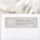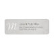 Un papier bambou texturé sert d'arrière - plan. Lettres blanches pour Monogramme et lettres noires pour nom et adresse. Étiquettes d'adresse de retour personnalisables. com