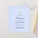 Un fond bleu clair et un cadre en arche. Personnalisez avec un nom et les détails de la cérémonie. Style d'écriture élégant et manuscrit.