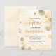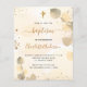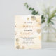 Un arrière - plan doré à l'eau décoré d'eucalyptus dorés et de poussière de parties scintillant en faux or. Personnalisez et le nom des enfants et les détails de la cérémonie. Lettres noires et dorées. Non sexiste. Retour : arrière - plan couleur or