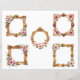 Elevate your crafting with this exquisite sheet of baroque frame cutouts, each one designed to feel like a tiny treasure pulled from an antique gallery wall. Ornate gold‑gilded frames shimmer with old‑world opulence, their scrolling edges and carved flourishes rendered in rich, dimensional detail. Nestled within and around each frame are delicate floral embellishments.