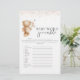 Créez un peu de plaisir à un baby shower avec ce jeu de mots sur le thème "Bear & The Bee" ! Caractéristiques design, arrosage de confettis d'or rose, illustration d'un ours de saumons d'aquarelle, tenant de l'herbe de pampas, pêche des fleurs délicates, regard sur une bourde d'abeille. Les réponses sont disponibles au contraire. Pour une personnalisation plus avancée de ce design, il suffit de sélectionner le lien "Personnaliser plus loin" après la personnalisation !