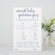 Le baby shower ou le sexe du quiz gestationnel de grossesse animal révèle un jeu de fête (avec les réponses ci-dessous) présentant un script décontracté et amusant. CLÉ DE RÉPONSE : Cochon 122, Kangaroo 37, Cheval 336, Cat 63, Lapin 33, Elephant 645, Canard 28, Mouton 148, Vache 284, Baleine 360, Lion 108, Chien-63, Souris-20, Giraffe-419, Ours-220, Chimpanzé-243, Chèvre-150 Pour d'autres couleurs ou des produits correspondants, visitez le magasin JustFharryn Zazzle, ou contactez le designer, c/o Fharryn@yahoo.com Tous droits réservés. #zazzlemade