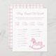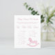 Gardez vos invités engagés avec cette carte de baby shower "Baby Around the World" sucrée, avec un cheval rocking rose aquarelle et un support en vichy. Les clients font correspondre les différentes traductions du mot "bébé" à leurs langues correctes — celui qui a les réponses les plus correctes gagne ! Caractéristiques : ・ Match-the-language jeu de baby shower ・ Adorable cheval rose rocking et en vichy design ・ Double face avec des tons pastel doux ・ Paires magnifiquement avec votre suite de baby shower rose