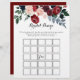 Ce jeu de bingo de marine rose bordeaux est parfait pour un wedding shower rustique. Le design se compose de pivoines roses, rousses, navales, bleues et bordeaux, de roses au feuillage vert soigneusement assemblés en bouquets élégants.