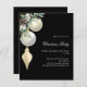 Pour une fête de Noël en famille et entre amis. Un arrière - plan noir élégant et moderne. Décoré de baubles blancs et dorés, un peu de verdure et un cône de pin. Personnalisez et ajoutez les détails. Retour : ajoutez l'URL de votre site Web au code QR pour RSVP et/ou les détails du parti. 1 feuille = 1 invitation imprimé bord à bord.
