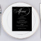 Cette élégante carte de menu à budget noir foncé présente un style classique et ancien avec une calligraphie blanche romantique. Ajoutez votre choix de dîners pour les entrées ou les entrées, le premier plat, le plat principal ou l'entrée, et les desserts. Donnez le ton à votre réception de mariage ou à votre dîner de répétition d'inspiration italienne sophistiquée, ou à vos offres de douches nuptiales, avec ce design élégant et minimaliste.