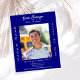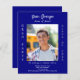 Personnalisez et ajoutez une photo, un nom, le nom de l'école, la classe et les détails de la fête. Un arrière - plan bleu marine, texte blanc. 1 feuille = 1 invite imprimé bord à bord.