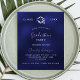 Une invitation moderne et élégante à la remise des diplômes. Un arrière - plan bleu marine, texte blanc. La couleur bleue est inégale. Personnalisez et ajoutez un nom, une année et des détails.