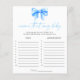 Papier Blue bow baby shower Nom de la chanson bébé jeu