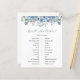Carte de jeu de douche nuptiale avec cascade d'aquarelle de fleurs bleues. Une façon amusante d'interagir avec les clients de douche.