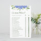 Qui Devine ? Shower Game sheet apportera beaucoup de plaisir et de rire à votre wedding shower! Il met les invités au défi de deviner si la mariée ou le marié a fait quelque chose d'abord dans leur relation. La page est à la fois élégante et charmante. Son design magnifique avec des hydrangées bleues multicolores, des parfums délicats de verdure naturelle dans un style aquarelle contemporain, et des bandes vertes coordonnées sur le dos est parfait pour tout boho, rustique, botanique, floral, jardin, mariage romantique, vintage ou formel. C'est un jeu parfait pour n'importe quel type de douche nuptiale/couple.