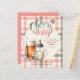 Rustique et mignon Bières et Bouteilles, À la santé de Bébé, Bébé brasse avec des fleurs sauvages, verdure dans les couleurs sauge et pêche (motif Gingham à carreaux et pois) invitation pour une baby shower, genre neutre. Champs de texte des deux côtés.