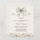 An elegant soft ivory background, decorated with a floral bow in muted green and muted pink. Personalize and add a name and party details. Text: She's tying the Knot.