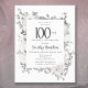 L'élégante invitation à la fête du 100e anniversaire présente un cadre botanique de fleurs blanches et de feuilles verts. Le nom de la personne d'anniversaire est écrit dans un texte traditionnel. Tout le texte peut être facilement édité pour créer juste le ton de fête approprié.