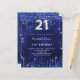 Une invitation moderne, élégante et glamour pour une fête de 21e anniversaire. Un arrière - plan bleu marine, décoré avec de la poussière de parties scintillant imitation. La couleur bleue est inégale. Personnalisez et ajoutez votre nom et les détails de votre fête. Le numéro 21 est écrit avec une police de style ballon, script, couleur argent.