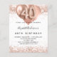 Pour un 40ème anniversaire élégant. Une arrière - plan blanche design. Décoré d'or rose, de faux parties scintillant roses, de mousseux et de ballons. Personnalisez et ajoutez un nom, ainsi que les détails du parti. Le nom est écrit avec un script de style écrit à la main, numéro 40 avec des polices de style ballon.