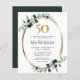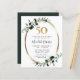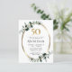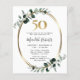 Budget 50e anniversaire Eucalyptus Gold Metallic Party Invitation... Notre invitation botanique de luxe 50ème anniversaire à prix abordable comprend un cadre (faux) or métallique ovale orné de vert poussiéreux et des feuilles d'eucalyptus émeraude créant une bordure élégante pour le texte de l'invitation à l'intérieur. Au-dessus du texte de l'invitation se trouve un graphique numéro 50 d'or qui ajoute à l'atmosphère luxueuse de cet invitation unique de fête d'anniversaire. Tout le texte peut être facilement révisé avec vos propres détails sur le modèle de personnalisation.