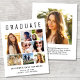 Élégant faire-part de graduation économique pour célébrer la catégorie avec "GRADUATE" tout en haut dans la grande typographie, un collage de sept photos et leur nom, année de classe et école dans la typographie moderne. Au verso, ajoutez une photo supplémentaire et un message personnalisé.