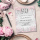 Une invitation moderne, élégante et glamour pour une fête de 90ème anniversaire. Un arrière - plan faux argenté, décoré de poussière de parties scintillant rose et faux argent. Personnalisez et ajoutez votre nom et les détails de votre fête. Le numéro 90 est écrit avec une police de style ballon, script.