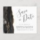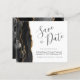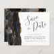 Cet élégant budget enregistrer la carte date dispose d'une bordure d'aquarelle noire taillée avec fausse parties scintillant or. Le texte personnalisable combine le script d'écriture manuscrite gris charbon, les polices cuivre et italique sur un arrière - plan blanc. L'envers est assorti d'un design d'agate noir et or.