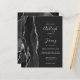 Le bord gauche de cette élégante faire-part de mariage moderne est orné d'une bordure en aquarelle noire et d'une parties scintillant en faux argent. Le texte personnalisable combine écriture manuscrite, copperplate et polices italiques en gris argenté clair sur un arrière - plan non noir. L'envers présente un design d'agate noir et argent assorti.