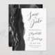 Le bord gauche de cet élégant mariage moderne, sauf la carte de date, est doté d'une bordure en aquarelle noire taillée avec une parties scintillant en faux argent. Le texte personnalisable combine écriture manuscrite grise au fusain, cuivre et polices italiques sur un arrière - plan blanc. L'envers présente un design d'agate noir et argent assorti.