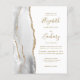 Le bord gauche de cette élégante faire-part de mariage moderne est orné d'une bordure en aquarelle grise et blanche ornée d'une parties scintillant en faux or. Le texte personnalisable combine écriture manuscrite, copperplate et polices italiques en gris fusain sur un arrière - plan blanc. L'envers est assorti d'un design d'agate gris, blanc et or.