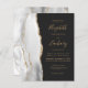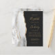Le bord gauche de cette élégante faire-part de mariage moderne est orné d'une bordure en aquarelle grise et blanche ornée d'une parties scintillant en faux or. Le texte personnalisable combine écriture manuscrite dorée, cuivre et polices italiques sur un arrière - plan noir ardoise. L'envers est assorti d'un design d'agate gris, blanc et or.